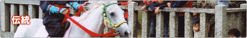 毎年10月第3日曜日、胡麻日吉神社の秋祭りに「馬馳け」と呼ばれる流鏑馬(やぶさめ)が奉納されます。祭りの早朝、祭事の主役となる馬場量、神馬、騎手、射手、矢取りがみそぎを済ませ、八幡宮など地区内の聖地を巡拝します。